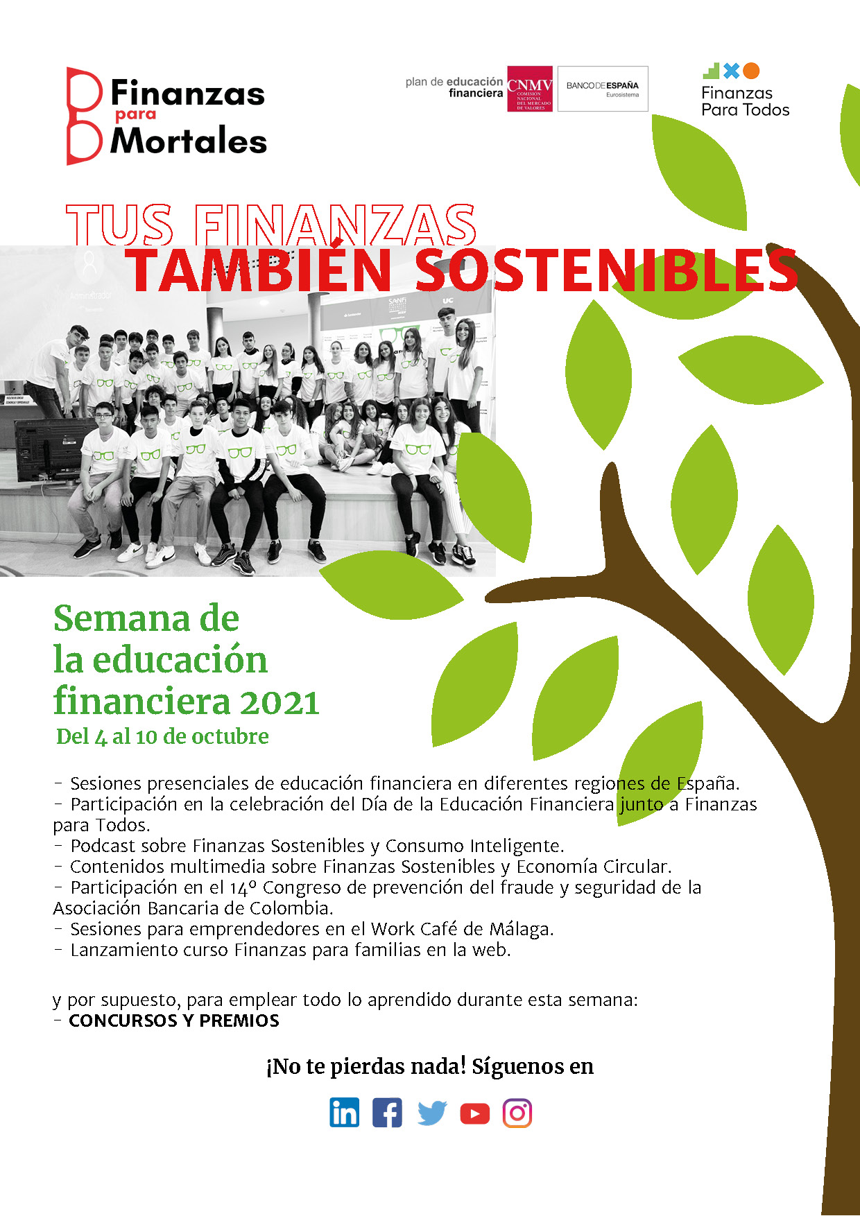 ‘Finanzas para Mortales’, programa de educación financiera de la Fundación UCEIF a través de Santander Financial Institute, ha diseñado un programa de actividades con motivo del Día Internacional de la Educación Financiera que se celebra este lunes 4 de octubre y que lleva por tema: ‘Tu Finanzas, también sostenibles’.