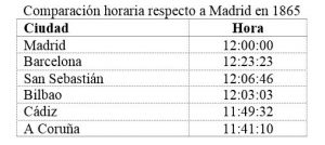 Antes de 1900 cada provincia española tenía una hora diferente dependiendo de su situación geográfica, la de su hora solar. Para hacernos una idea, la diferencia horaria entre A Coruña y Girona era de unos 45 minutos. Entre Madrid y Barcelona, las dos grandes ciudades del país, la diferencia era de una media hora. Una circunstancia que resultaría inconcebible hoy en día, no tanto entonces.