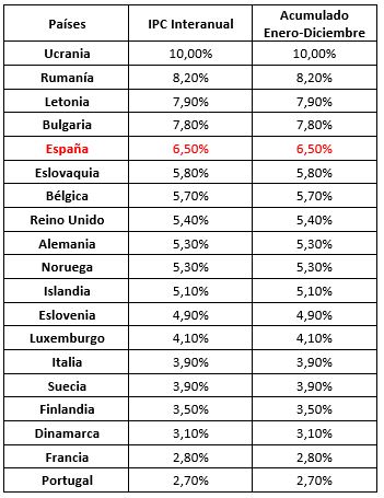 Te mostramos el IPC de distintos países europeos al finalizar 2021: